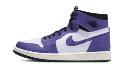 The Air Jordan 1 Zoom Comfort Crater Purple features purple leather inserts, but also a touch of originality with a white corduroy-like fabric. The collar is lined and padded for comfort. All this while turning to a more eco-responsible than its big sister, the Air Jordan 1 High Zoom Air CMFT Court Purple Patent.