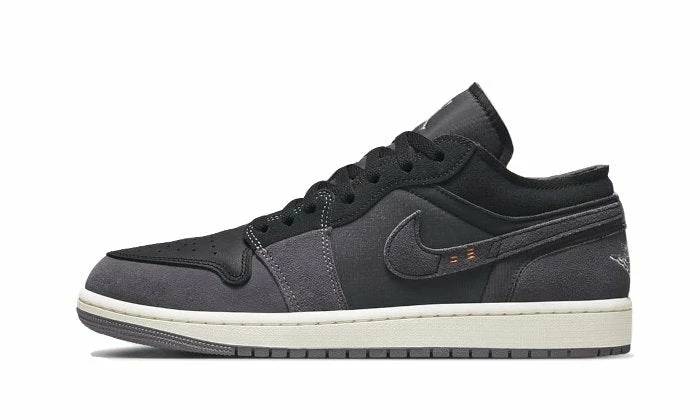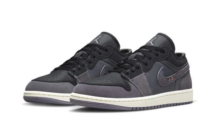 The Air Jordan 1 Low Inside Out Black unveils an assembly of materials based on leather, Sweden and textile. This mixed upper features varying shades of gray and black. This worked silhouette gives the impression that the entire upper has been reversed, as if the inside of the pair became the outside. Finally, the small orange stitching on the Swoosh side represent the number 23 in honor of Michael Jordan.