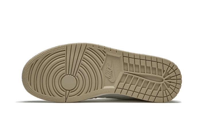 The Air Jordan 1 Mid Milan features a pastel colorway, with a textured leather upper mixing off-white and beige. Pink inserts add a touch of color to the pair. There is a beige outsole and “MLN” on the removable tag.