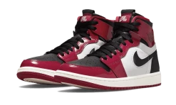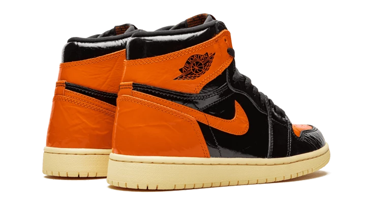 After the first version released in 2015, revisited in 2016 and then declined in a satin version, this model is back with the Air Jordan 1 Shattered Backboard 3.0. Reflecting the colors of the jersey Jordan wore during the match, this silhouette is made of black crumpled patent leather contrasted by orange yokes on the toe box, swoosh and heel. The whole is based on a beige sole.
